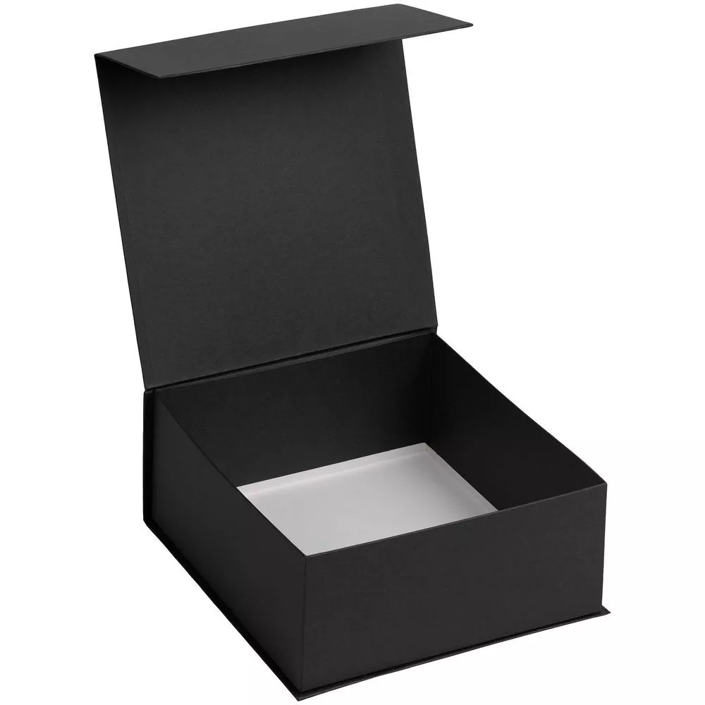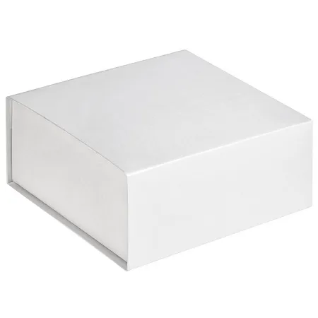 Коробка изготовлена из переплетного картона, кашированного дизайнерской бумагой Majestic Moonlight Silver, с крышкой на магните.