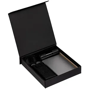 Коробка выполнена из переплетного картона, кашированного дизайнерской софт-тач бумагой Senzo.