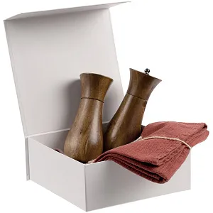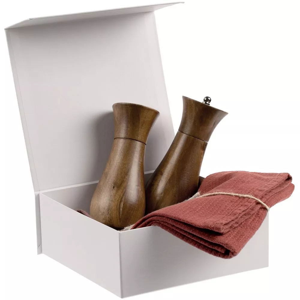 Коробка выполнена из переплетного картона, кашированного дизайнерской бумагой Curious skin (софт-тач), с крышкой на магнитах.