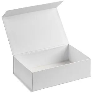 Коробка выполнена из переплетного картона, кашированного дизайнерской бумагой Malmero. На крышке выполнено тиснение золотистой фольгой. Закрывается на магнит.
