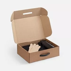 Самосборная коробка-шкатулка со вставной пластиковой ручкой.