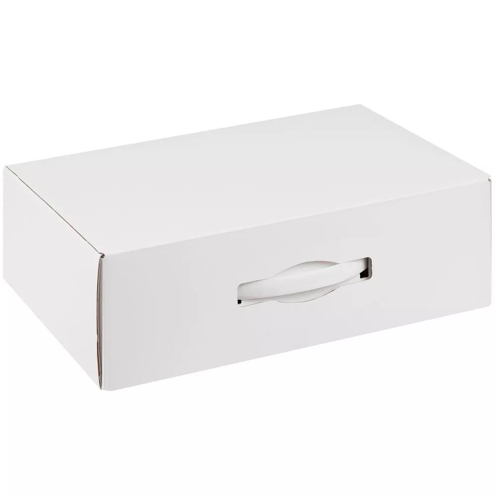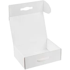 Самосборная коробка-шкатулка со вставной пластиковой ручкой.