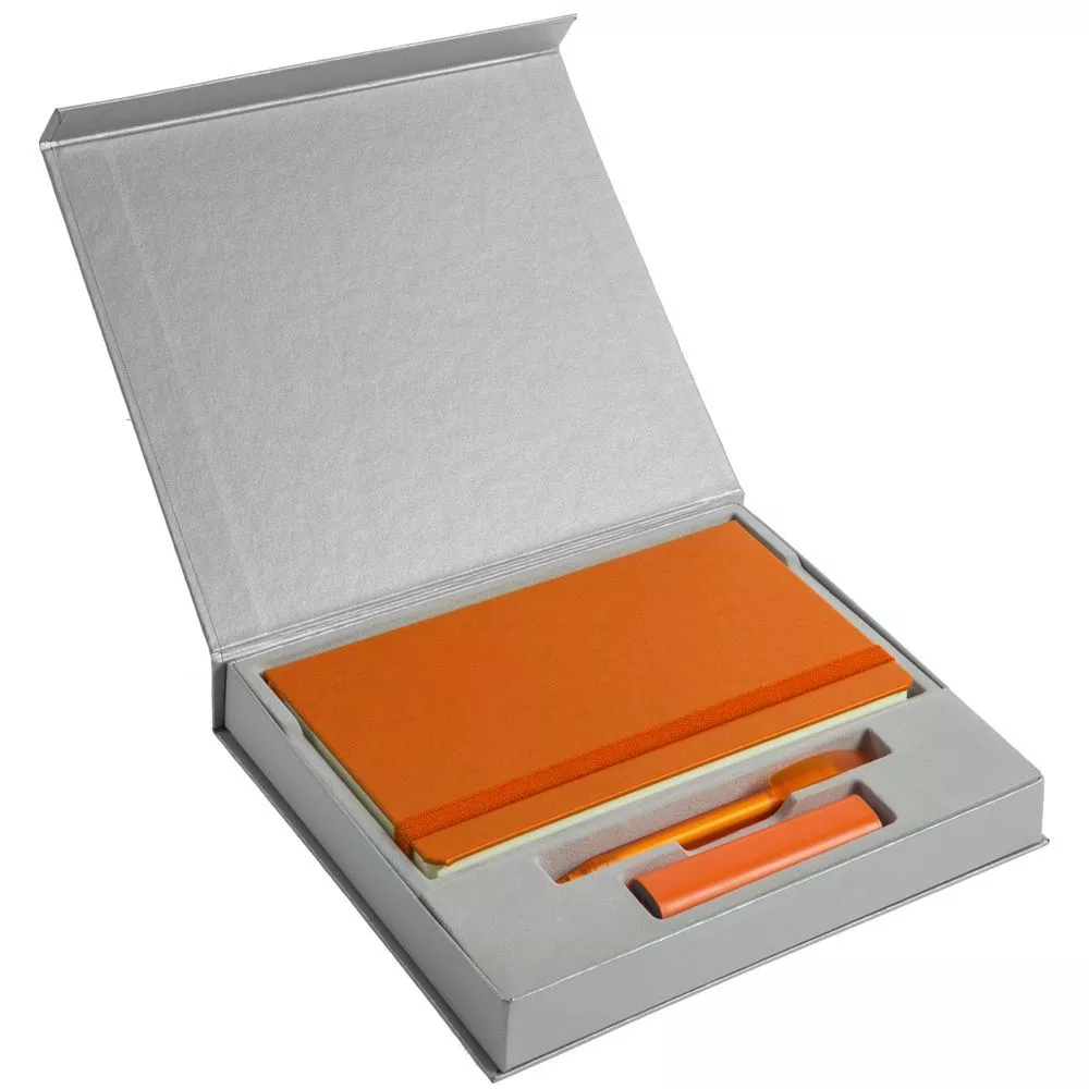 Коробка из переплетного картона, кашированного дизайнерской бумагой Majestic, с крышкой на магните и флокированным ложементом.