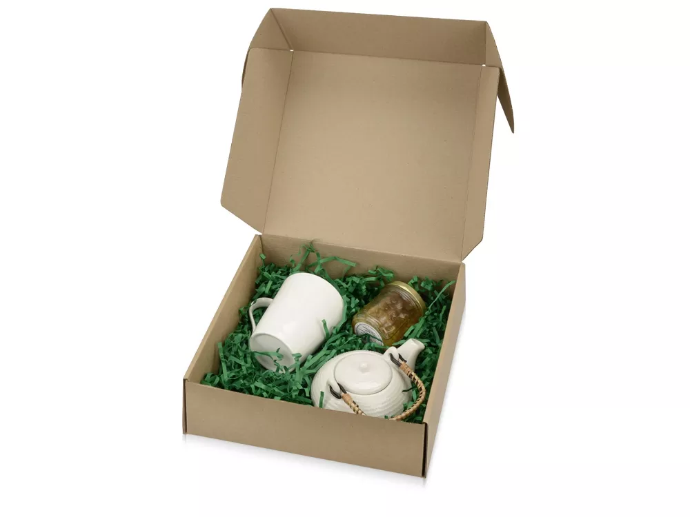 Упаковка всегда является важной частью любого подарка. Оригинально и красиво оформленный презент всегда создаст интригу того, что находится внутри. Поэтому очень важно уделять внимание таким важным деталям, как подарочная упаковка. Подарочная коробка из микрогофрокартона позволяет поместить в нее различные сувениры, например кружку, заварочный чайник или баночку с медом и вареньем. Съедобные товары вы также можете заказать у нас. Внутрь коробки можно добавить бумажный наполнитель, который выгодно подчеркнет ваш тонкий вкус! Подарочная коробка подходит под нанесение, таким образом подарок будет еще долго напоминать получателю о вашей компании. Размер коробки в разобранном виде 81 х 76,6 см.