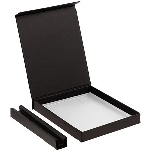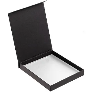 Коробка выполнена из переплетного картона, кашированного гладкой дизайнерской бумагой Majestic, с крышкой на магните.