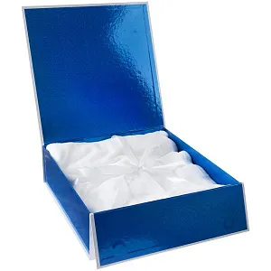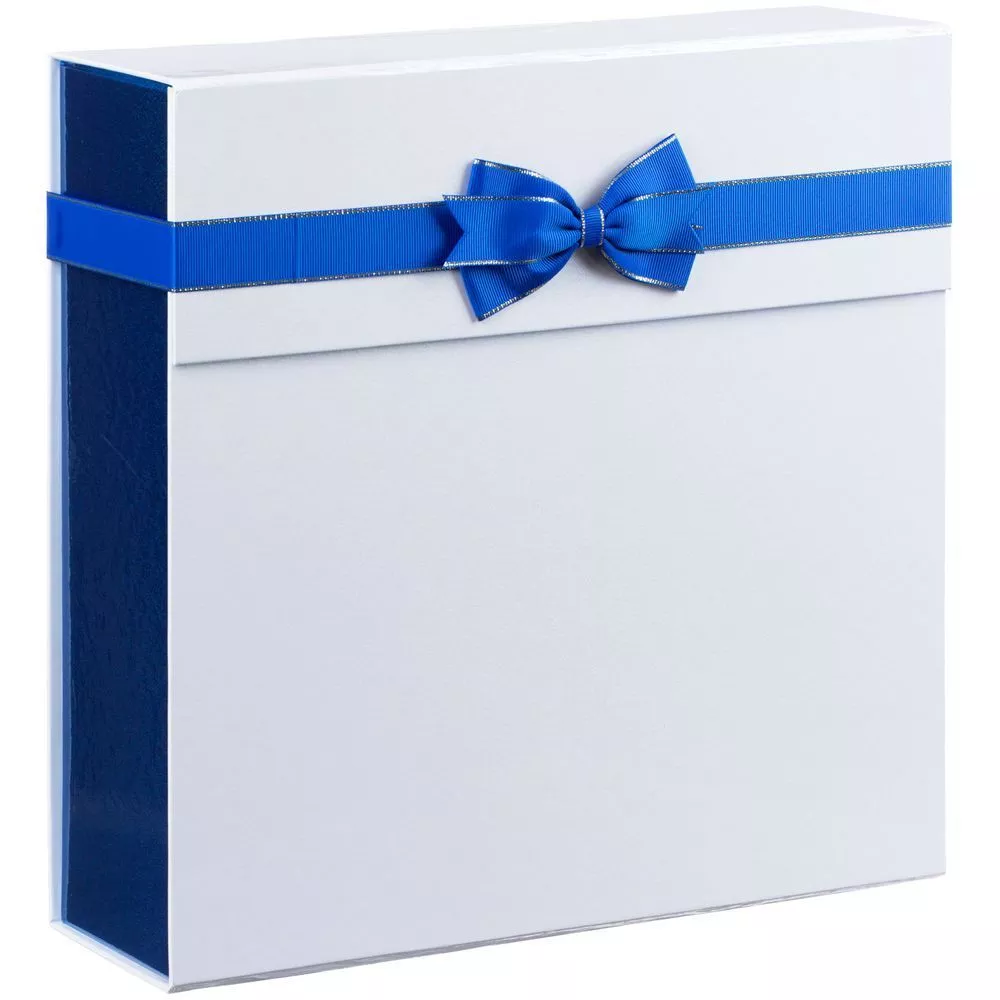 Коробка из переплетного картона, кашированного мелованной бумагой с глянцевой ламинацией. Крышка на двух магнитах дополнительно фиксируется лентой.Толщина картона 2 мм.
