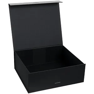 Коробка из переплетного картона, кашированного тонированной в массе крафтовой бумагой. Крышка на двух магнитах дополнительно фиксируется репсовой лентой.Толщина картона 2 мм.