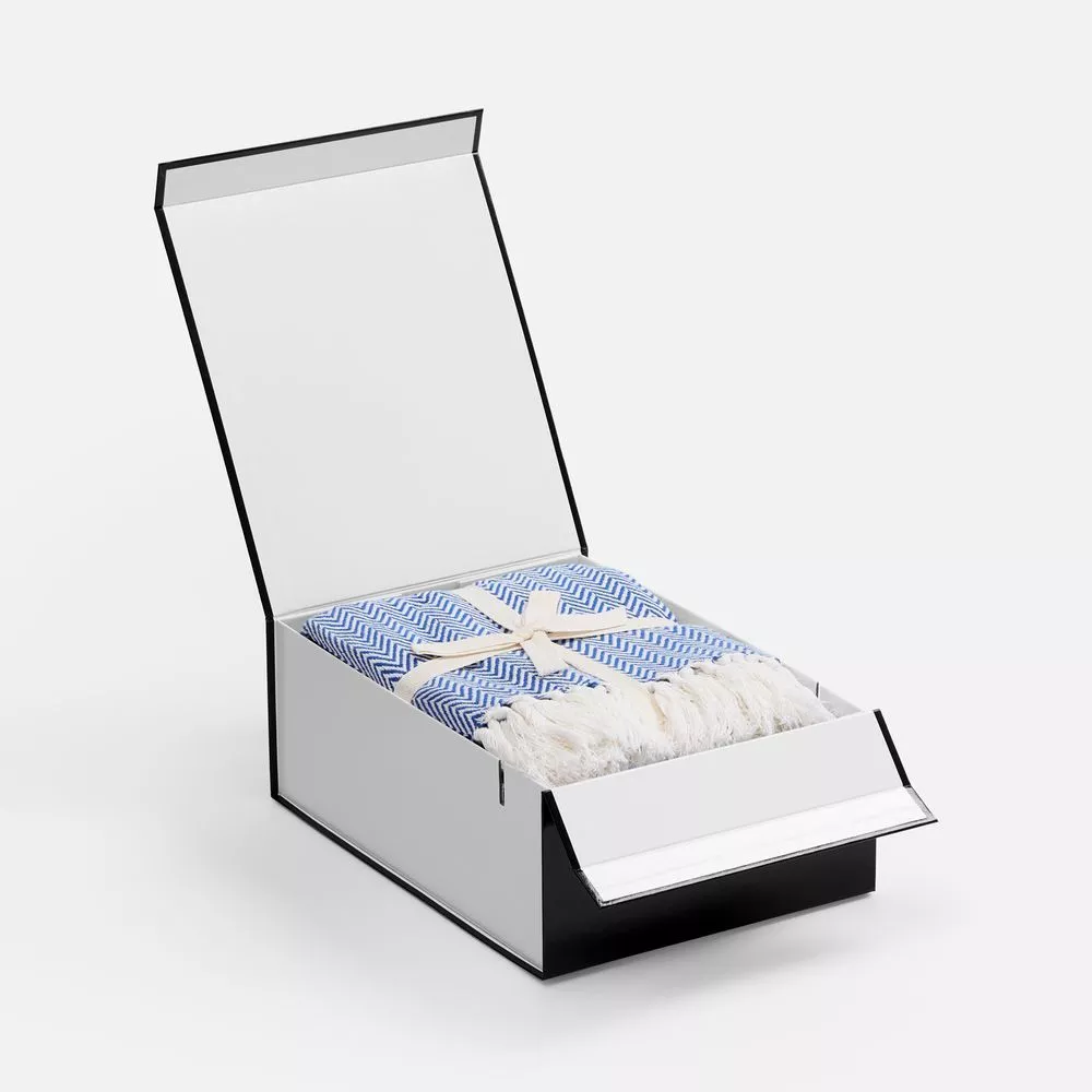 Плотная коробка из переплетного картона толщиной 2 мм с практичной конструкцией на двух створках. Складная система с уже нанесенным двусторонним скотчем позволяет быстро собрать коробку без дополнительных инструментов. Лайнер с полуглянцевым ламинированием устойчив к повреждениям и надолго сохраняет безупречный вид.