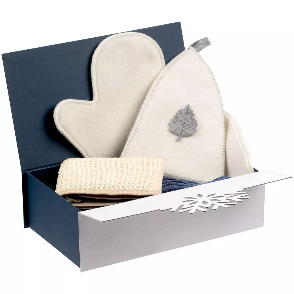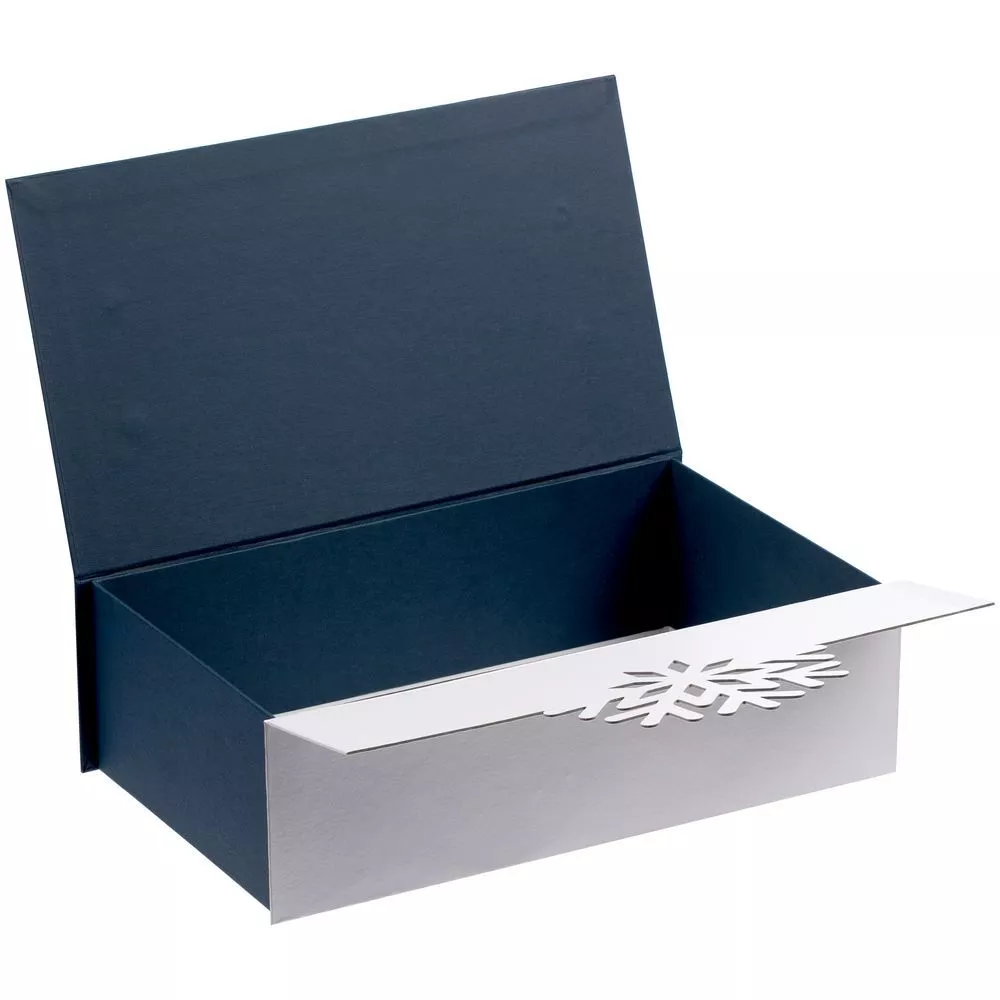 Коробка из переплётного картона, кашированного дизайнерской бумагой Classy Covers и Majestic. Крышка в форме снежинки на магнитах.