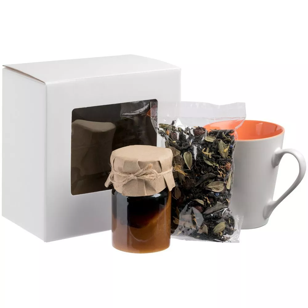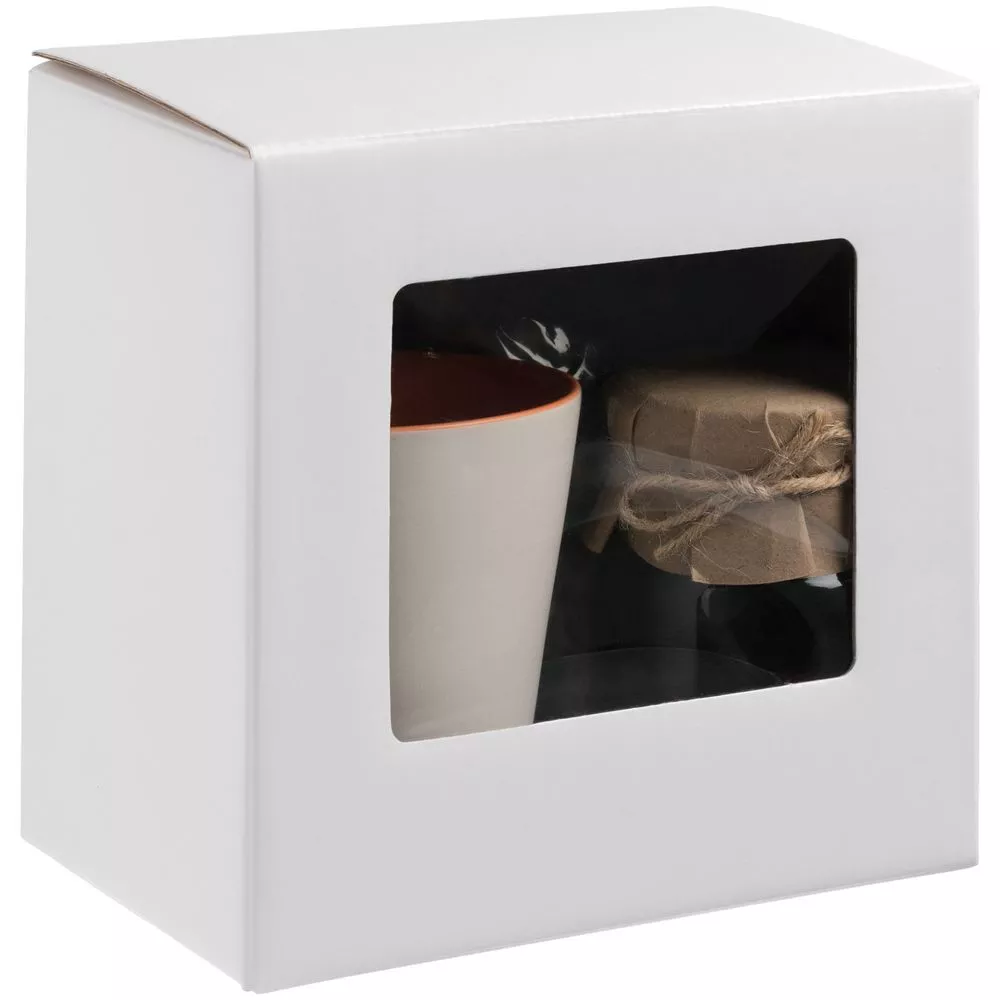 Самосборная коробка с прозрачным пластиковым окном.