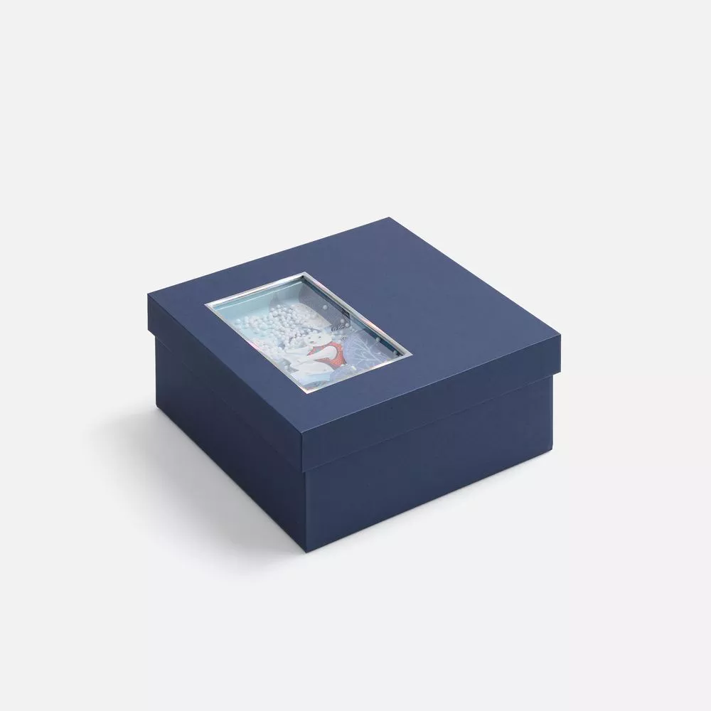 Элегантная коробка из переплетного картона The Blue Bear станет настоящим украшением зимних праздников. Ее главная изюминка — очаровательное окошко с 3D-иллюстрацией, которое словно приглашает в мир новогодних чудес.