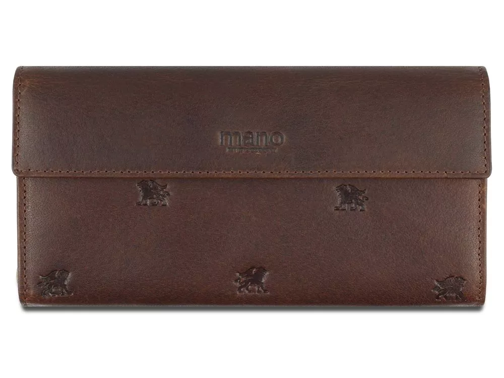 Коллекция DON LEON - квинтэссенция инноваций бренда MANO 1919®. Все изделия коллекции изготовлены вручную из высококачественной натуральной кожи буйвола в роскошном коричневом цвете. Элегантное тиснение в виде льва и изящный логотип подчеркивают индивидуальный стиль коллекции. MANO 1919 ®. Кошелек M191920541 Размеры: 10 см (В) x 19 см (Ш) x 3 см (Г) Материал: натуральная кожа буйвола Кошелек изготовлен вручную из натуральной кожи буйвола, обеспечивает безопасное хранение купюр, кредитных карт и монет. Особенности: • 12 отделений для кредитных карт • 2 основных отделения для купюр позволяют хранить банкноты в развернутом виде • Дополнительное отделение • Отделение для монет на молнии • Первоклассная кожа, качественная подкладка и надежные застежки на кнопке и молнии гарантируют долговечность изделия. Кошелек M191920541 станет незаменимым компаньоном в повседневной жизни.