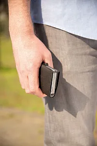 Этот стильный кошелек с держателем карт C-Secure идеально подойдет тем, кто регулярно пользуется картами. С ним вы навсегда забудете об «электронных кражах», сломанных или согнутых картах. По сравнению с нашим первым поколением кошельков держатель для карт стал больше: в нем может поместиться 12, а не 7 карт. Мы рекомендуем хранить как минимум 8 карт в кошельке, иначе карты могут выпадать. Удобный слайдер на боковой части держателя позволяет достать нужную карту, прилагая минимум усилий. В кошельке удобно носить наличные.