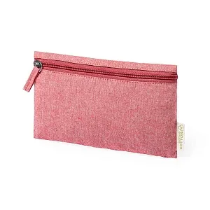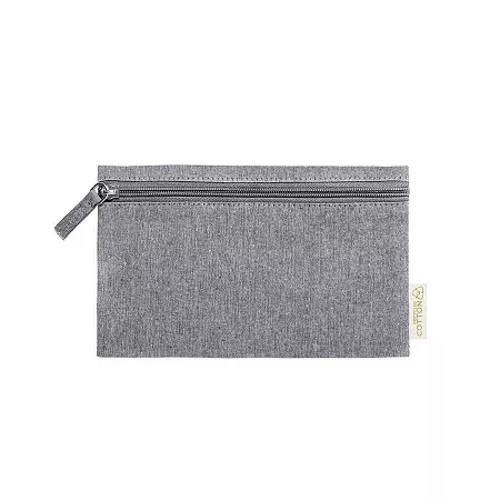 Косметичка из переработанного хлопка. Основное отделение на молнии с пулером из переработанного хлопка.