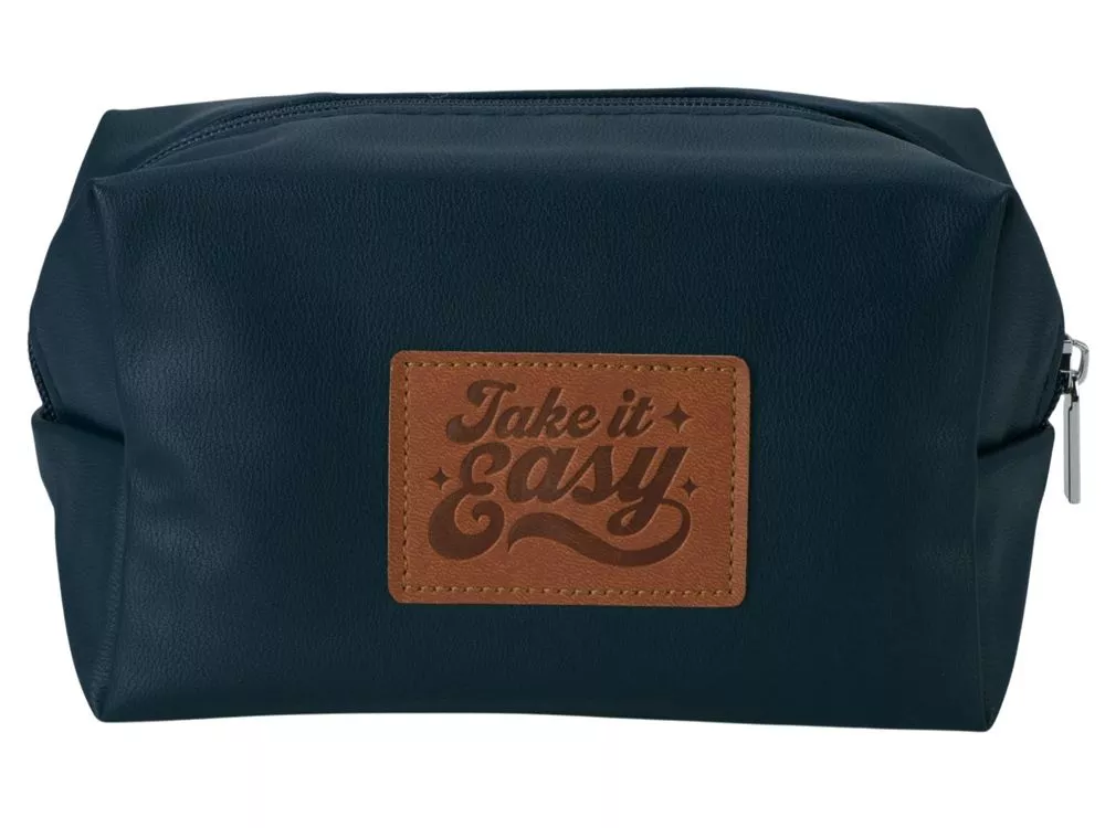 Косметичка из искусственной кожи удобной и вместительной формы. Внутри подклад серого цвета с карманом для маленьких предметов. Термотрансфер (1 цвет (цветные изделия)) на данный товар осуществляется бесплатно. Оплачивается только настройка оборудования в размере 10000 рублей на весь тираж.