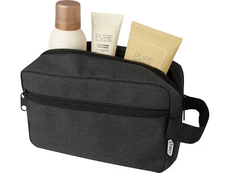 Косметичка Ross — идеальный спутник для путешествий для ношения предметов гигиены и косметики. Изготовлена из переработанного полиэстера, сертифицированного согласно GRS, что делает ее более экологичным выбором. Имеет основное отделение на молнии, передний карман и плетенную петлю. Емкость: 1,5 литр.