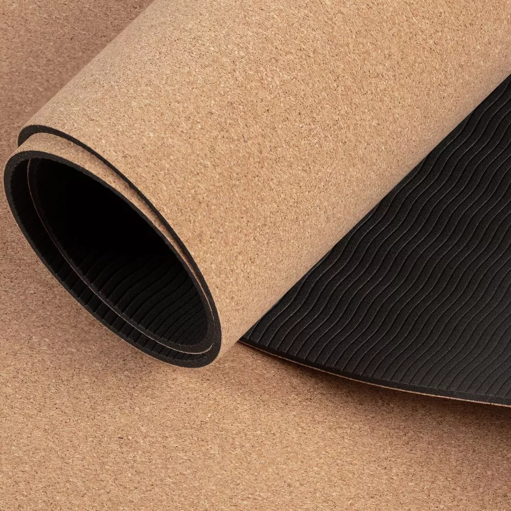 Лицевая сторона выполнена из пробки — экологичного, теплого и приятного на ощупь материала, а обратная из ТПЭ — термопластичного эластомера, который гарантирует надежное сцепление коврика с поверхностью.