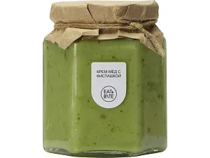 Крем-мёд это настоящий десерт для сладкоежек. Благодаря своей структуре он идеально подходит как топпинг, который легко намазать и не бояться, что он растечется по тарелке. Фисташка придает крем-мёду нежнейший вкус крема-пралине. Тампопечать (1 цвет (цветные изделия)) на данный товар осуществляется бесплатно. Оплачивается только настройка оборудования в размере 2300 рублей на весь тираж.