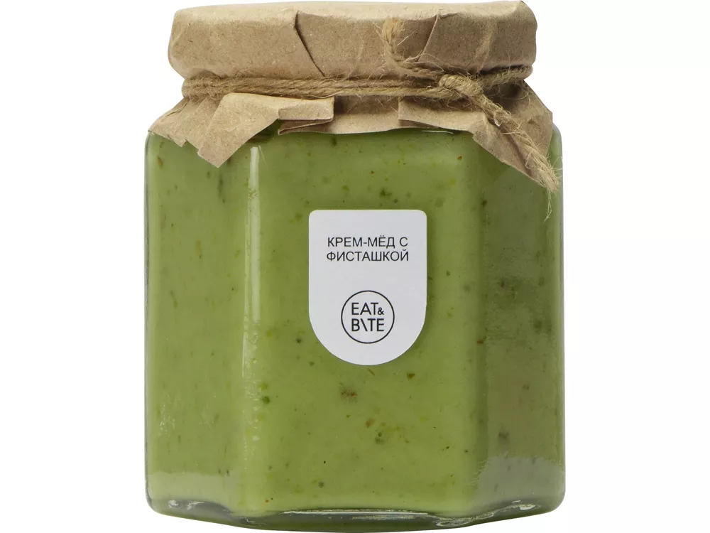 Крем-мёд это настоящий десерт для сладкоежек. Благодаря своей структуре он идеально подходит как топпинг, который легко намазать и не бояться, что он растечется по тарелке. Фисташка придает крем-мёду нежнейший вкус крема-пралине. Тампопечать (1 цвет (цветные изделия)) на данный товар осуществляется бесплатно. Оплачивается только настройка оборудования в размере 2300 рублей на весь тираж.