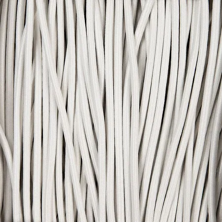 Резинка представляет собой пучок латексных нитей с внешней полиэфирной оплеткой. Такая конструкция обеспечивает плавное растяжение и защищает резинку от разрыва и повреждений.