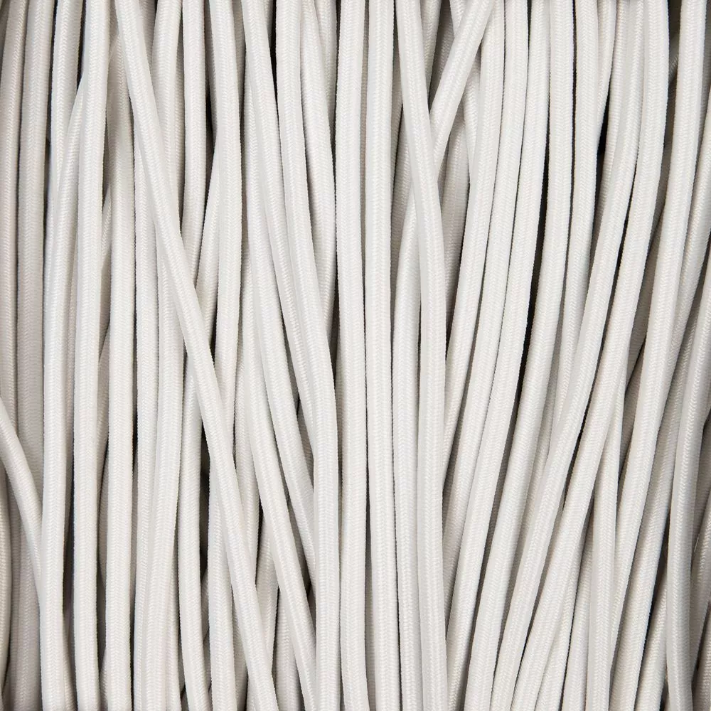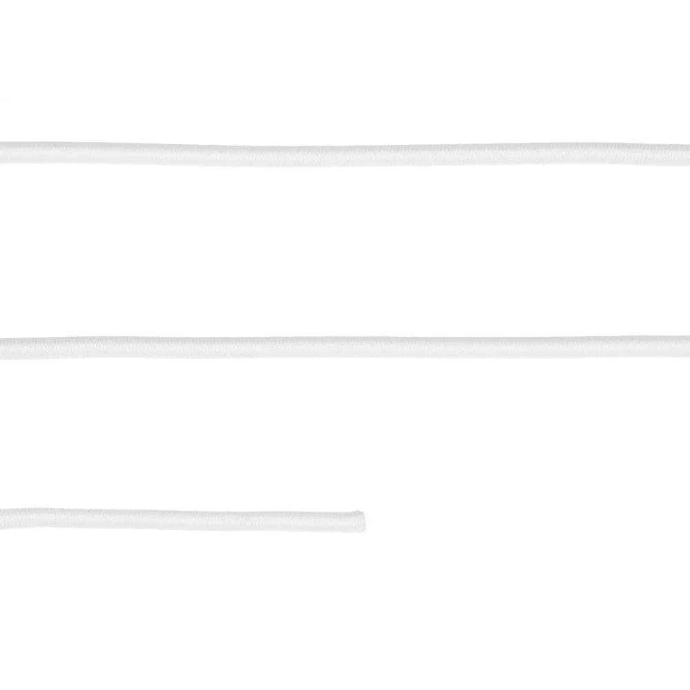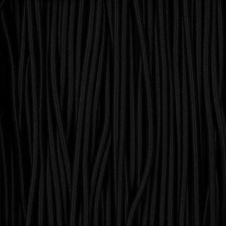 Резинка представляет собой пучок латексных нитей с внешней полиэфирной оплеткой. Такая конструкция обеспечивает плавное растяжение и защищает резинку от разрыва и повреждений.