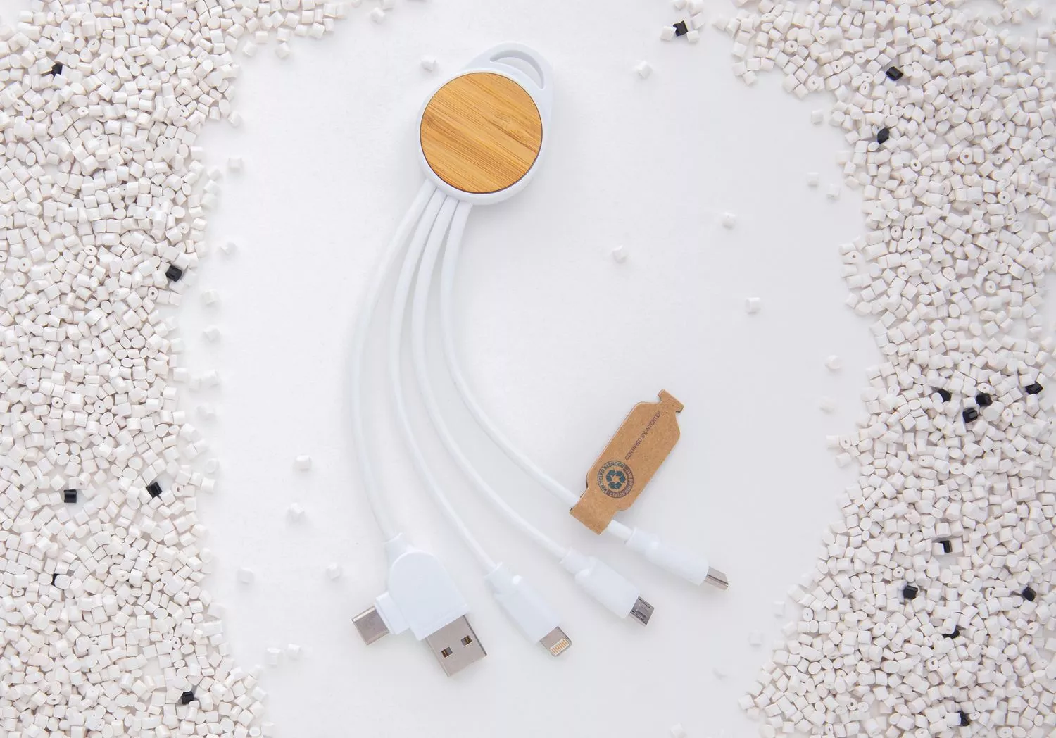 Компактный кабель Ontario изготовлен из сертифицированных переработанных материалов. 5 разъемов: вход USB C, вход USB A, выход Type-C, выход IOS и выход micro USB. Это позволяет использовать кабель для устройств с выходами Type-C, которыми оснащены многие современные смартфоны и ноутбуки. Кроме того, в кабеле предусмотрен универсальный порт USB A, который позволяет заряжать любое устройство от любого источника питания. Корпус изготовлен из бамбука FSC® и переработанного TPE, сертифицированного RCS. Содержание вторичных материалов: 82% от общего веса изделия. Максимальная длина: 20 см. Поставляется в крафт-упаковке FSC® mix. Не содержит ПВХ.