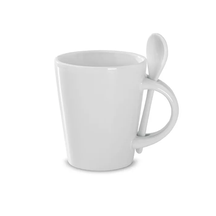 Керамическая кружка с ложкой объемом 340 мл со специальным покрытием для сублимационной печати.