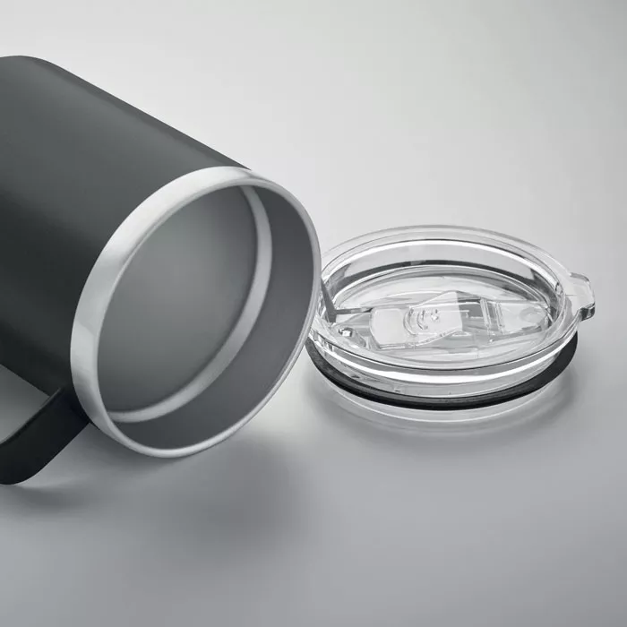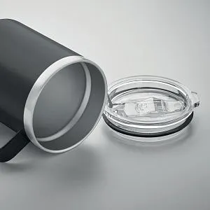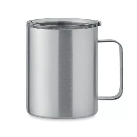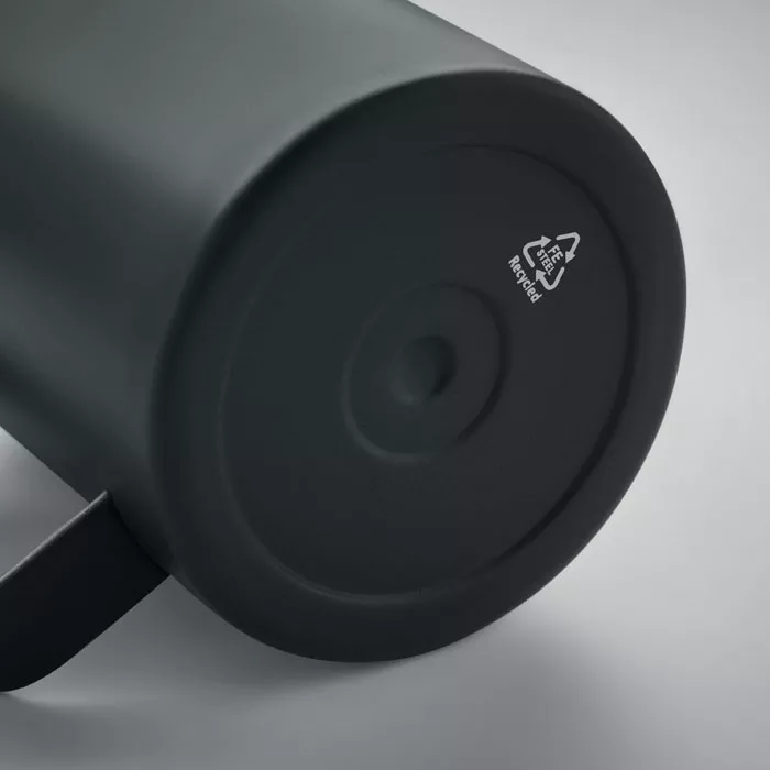 Кружка с двойными стенками из переработанной нержавеющей стали 90% и 10% нержавеющей стали с крышкой и отверстием для питья. Герметична. Емкость: 300 мл.