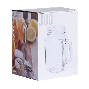 Прозрачная стеклянная кружка в форме банки-современный тренд кафе и баров. Подойдет как для коктейлей со льдом в летнее время, так и для горячего глинтвейна-в зимнее. Поставляется в индивидуальной коробке. Крышка не входит в комплект.