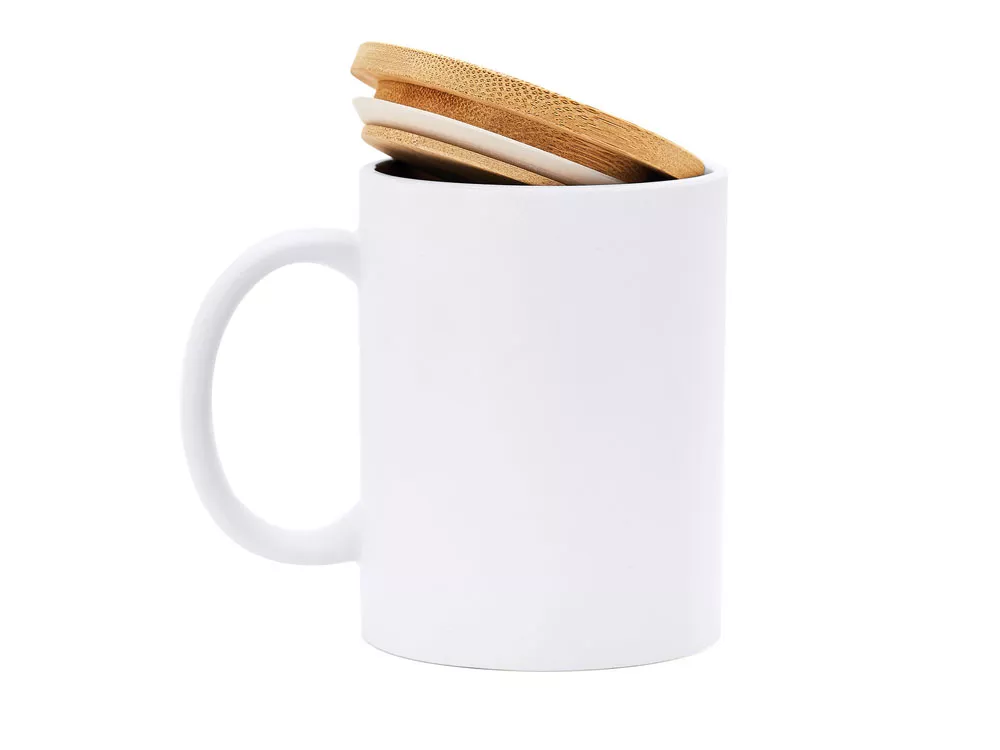 Керамическая кружка Eco line объемом 370 мл. Дизайн с матовой отделкой и бамбуковой крышкой. Это идеальная кружка для подарка.
