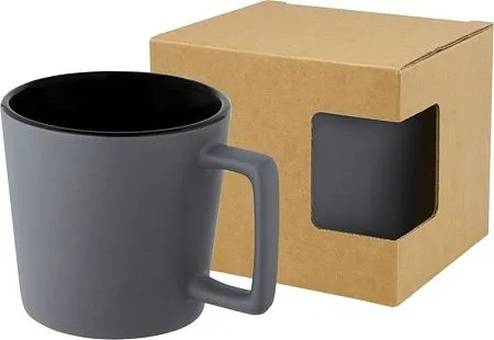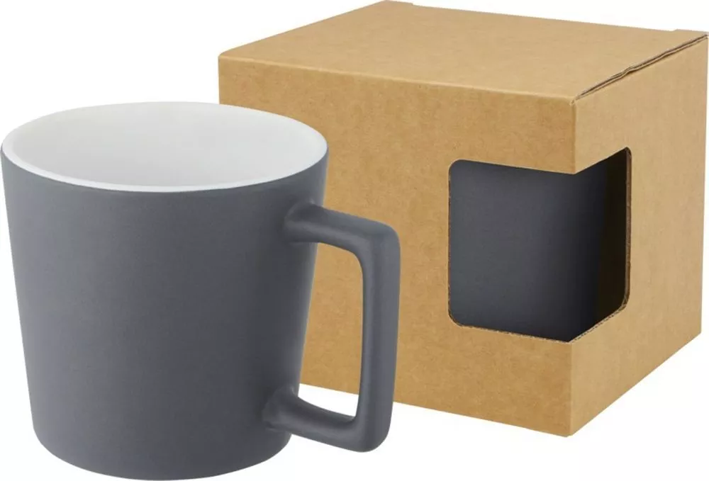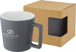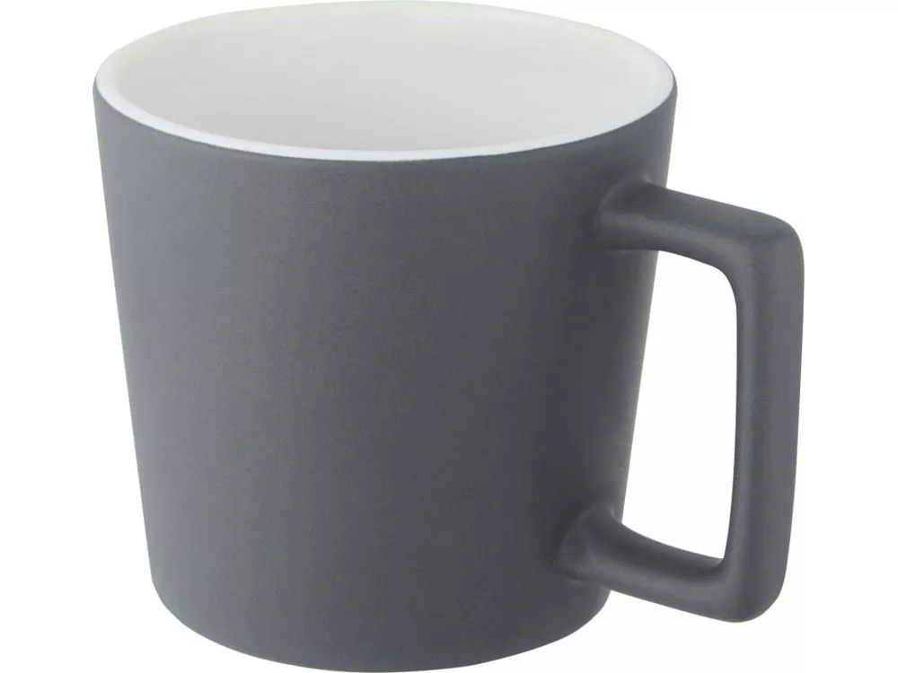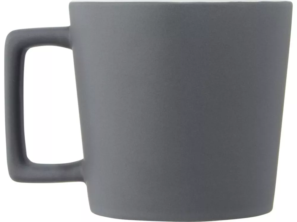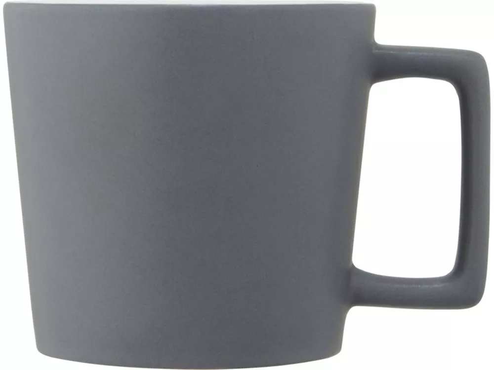 Керамическая кружка с современным дизайном и матовой отделкой. Объем 370 мл. Можно мыть в посудомоечной машине. Поставляется в упаковочной коробке из переработанного картона. Керамика. Тампопечать (1 цвет (цветные изделия)) на данный товар осуществляется бесплатно. Оплачивается только настройка оборудования в размере 8200 рублей на весь тираж.