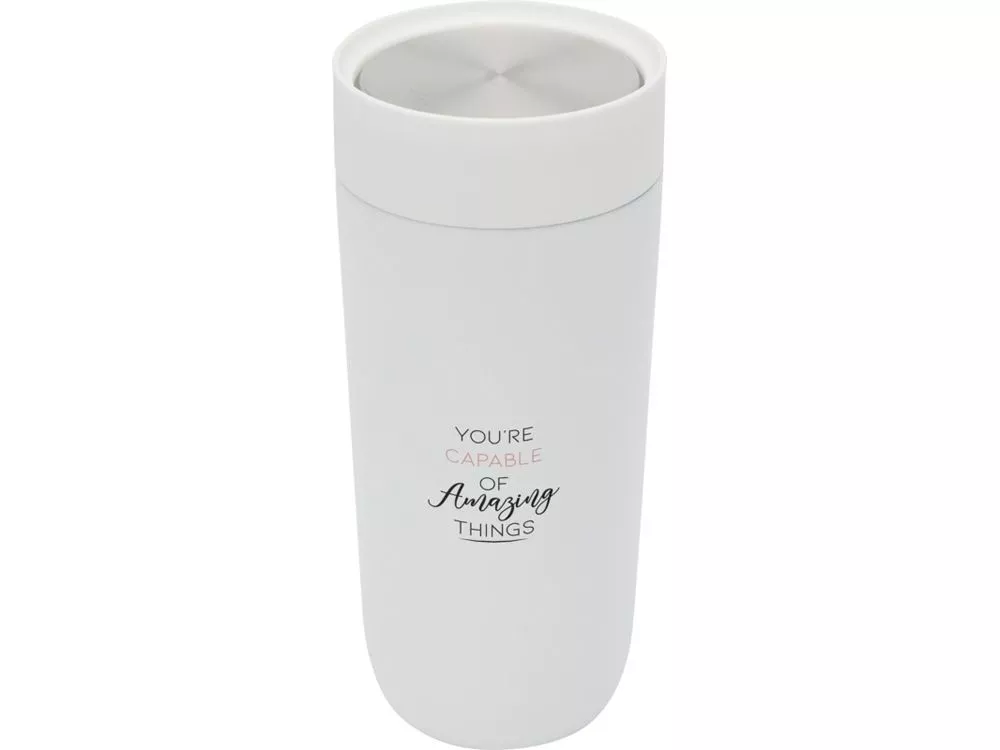 Премиальная кружка для питья находу с удобным механизмом открывания из нержавеющей стали, позволяющим открывать его одной рукой. Корпус из нержавеющей стали, сертифицированной согласно RCS, с прочным порошковым покрытием. Крышка изготовлена из сертифицированной согласно RCS нержавеющей стали и пластика РР. Медное покрытие и керамическое внутреннее покрытие. Подходит для большинства стандартных автомобильных подстаканников. Сохраняет напитки горячими в течение 12 часов или холодными в течение 24 часов. Поставляется в подарочной коробке из переработанного картона. Объем: 350 мл. RCS certified recycled stainless steel. упаковка FSC Mix Credit P5.1 CU-COC-877277.