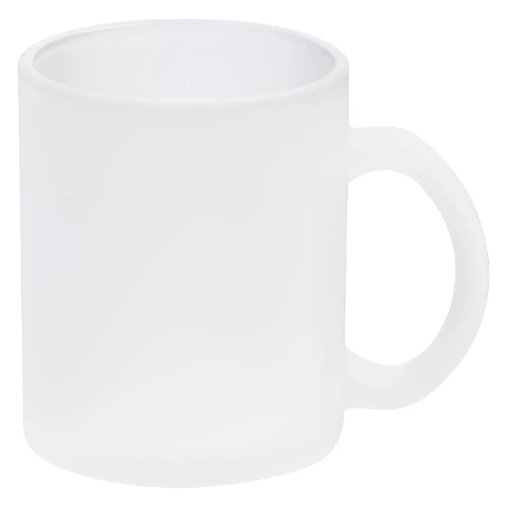 Матовая стеклянная кружка классической формы с удобной ручкой. Подходит для сублимационной печати.