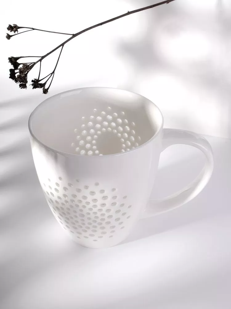 Чашка Coralli Fiore — легкая, словно светящаяся изнутри посуда с легендарным узором «рисовое зерно». Благодаря тонкому слою прозрачной глазури кружка выглядит кружевной и ажурной, при этом напиток гарантированно остается внутри.