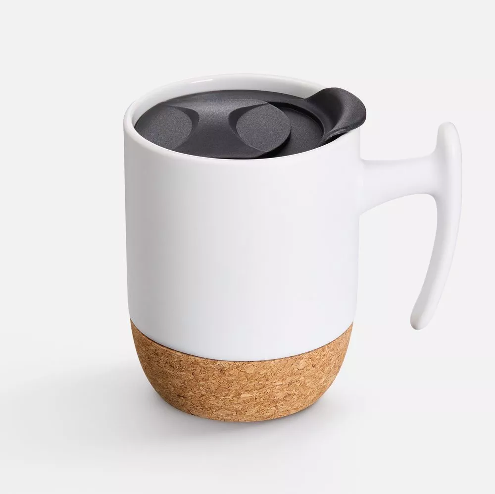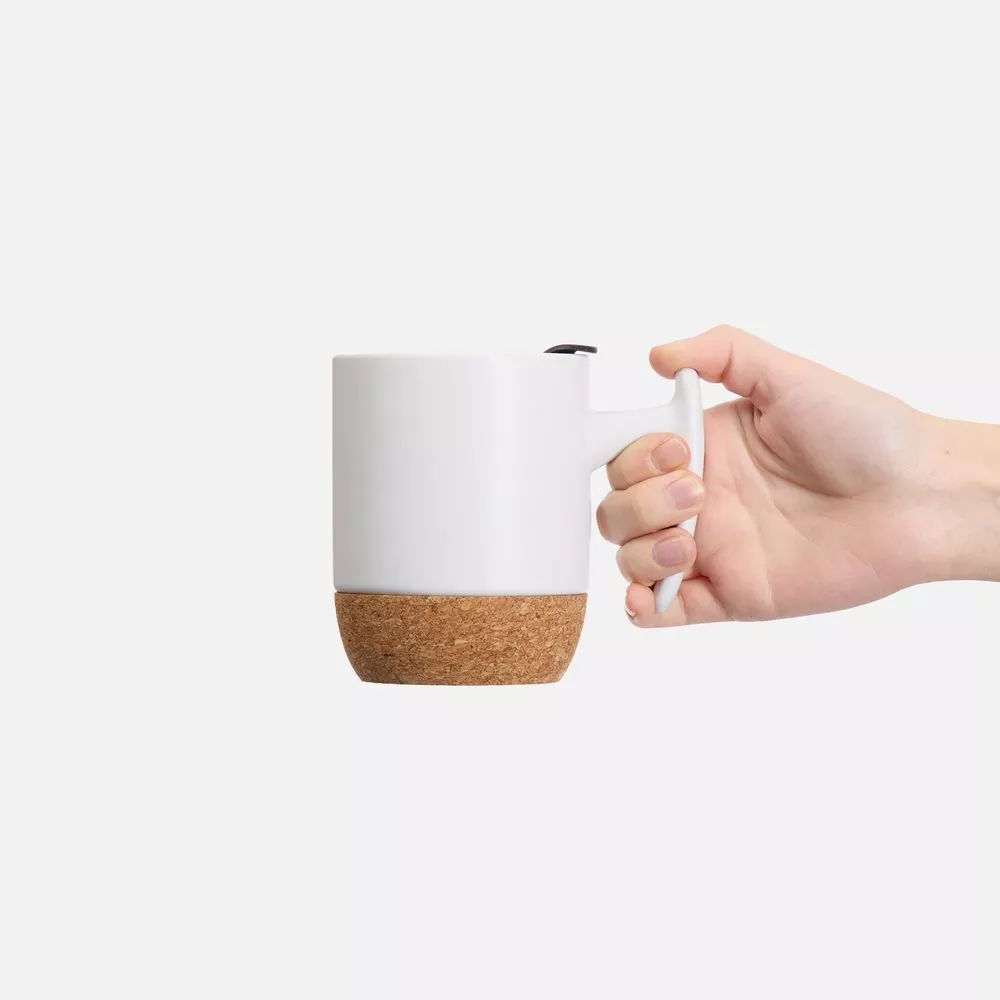 Эта кружка — стильное сочетание функциональности и дизайна. Корпус из керамики сохраняет напиток теплым, нижняя часть из пробки защищает поверхность от нагрева и скольжения, а пластиковая крышка предотвращает проливание. Эргономичная ручка делает использование особенно удобным.