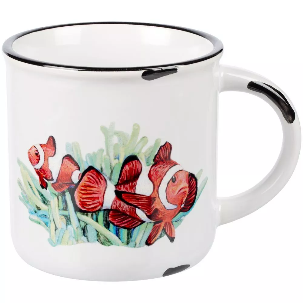 Имитирующие сколы эмали пятна наносятся вручную и могут отличаться от кружки к кружке.