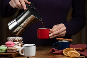 Кружка из фаянса, имитирующая ставшую классикой эмалированную посуду. Идеально подходит для подачи эспрессо.