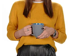Кружка выполнена из керамики, её удобно держать в руке за счет большой ручки. Большой объём позволит наслаждаться любимым напитком в течение долгого времени. Нейтральный серый внешний цвет и большая палитра ярких внутренних идеально подойдут под нанесение любого логотипа, надписи, изображения.