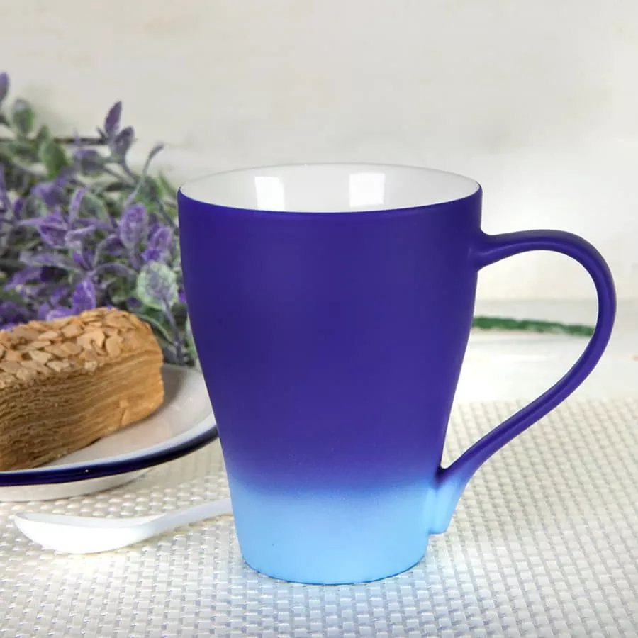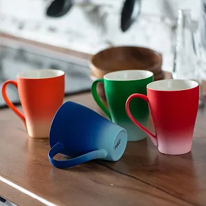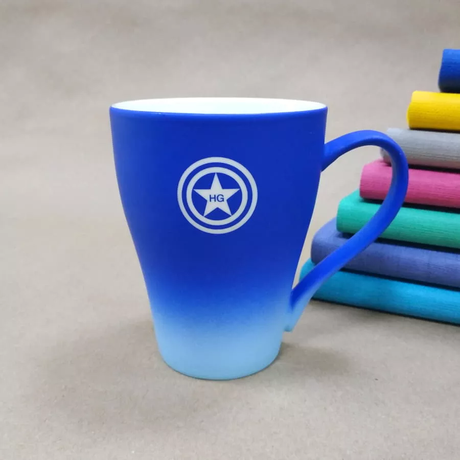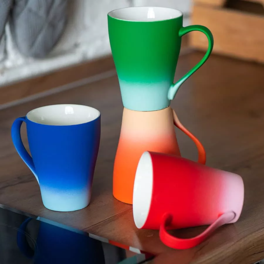 Кружка с прорезиненным покрытием и цветовым градиентом Переход от насыщенного оттенка в основной части кружки к совсем светлому внизу, для более выгодного представления логотипа на темной части Градиент - модный тренд, для его создания используются различные техники, краски и материалы, берутся различные цветовые сочетания Природа - главный творец градиента. Небо, море, бесконечные пески пустыни или горные вершины в снегу... Самые красивые и самые естественные цветовые сочетания - вокруг нас. Цвет темной части близкий к Pantone 355C