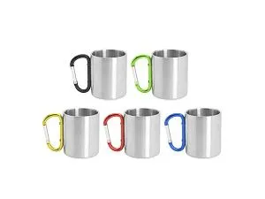 Двустенная металлическая кружка с ручкой-карабином. Доступен в различных цветах. Объем 230 мл.