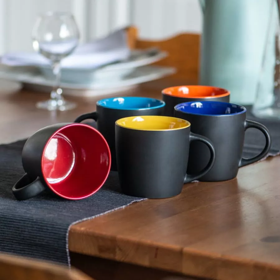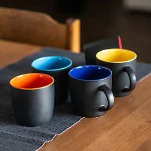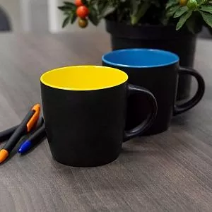Матовая черная снаружи и яркая цветная внутри - черный цвет идеально оттеняет и преображает любой цвет, делает выразительнее и сочнее Цвета внутренней части близки по Pantone ручкам FORTE Благодаря такому сочетанию черного и цветного кружки идеально подходят к ручкам FORTE SOFT BLACK Цвет близкий к Pantone 298C
