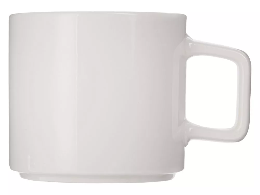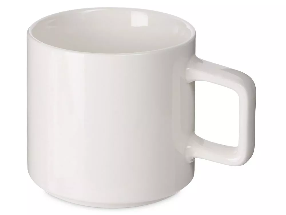 Белая кружка из костяного фарфора с удобной квадратной ручкой — широкой, комфортной для хвата и необычной формы. Форма дна позволяет ставить кружки друг на друга для экономии места: зацепленные друг за друга, выступом донышка, они не соскользнут друг с друга, выстроенные в ровную башню. - удобная ручка необычной формы - форма дна позволяет компактно хранить кружки друг на друге - 410 мл — популярный объем Тампопечать (1 цвет (белые изделия)) на данный товар осуществляется бесплатно. Оплачивается только настройка оборудования в размере 3600 рублей на весь тираж.