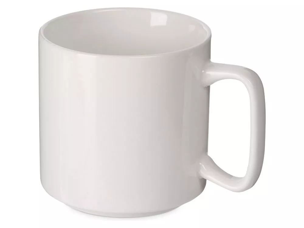 Кружка из костяного фарфора с удобной ручкой прямоугольной формы, которая выделяет ее из множества других белых чашек. Объем — универсальный, угодит любому: 370 мл подойдут и для кофе, и для чая, и тем, кто до последнего откладывает поход на кухню за новой порцией напитка. А еще обратите внимание на донышко: благодаря его форме такие кружки можно ставить одна на другую, что позволит сэкономить место на офисной кухне. - удобная ручка - форма дна позволяет компактно хранить кружки друг на друге - 370 мл — популярный объем Тампопечать (1 цвет (белые изделия)) на данный товар осуществляется бесплатно. Оплачивается только настройка оборудования в размере 7300 рублей на весь тираж.
