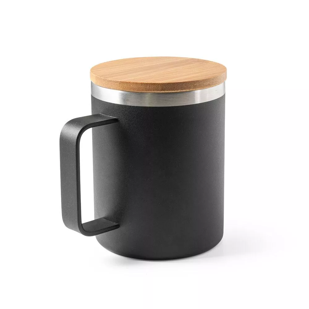 Кружка из нержавеющей стали (90% переработанной) с бамбуковой крышкой и двойными стенками. Емкость до 420 мл. Поставляется в подарочной крафт-коробке. As the product is made from natural materials, the colour of the product and the printing result may vary between products. ø88 x 112 мм