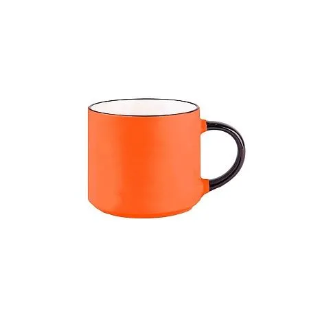 Ёмкая кружка трендовой цилиндрической формы с матовым покрытием.Яркий цветной корпус с черной ручкой и кантом по краю.Цвет близкий к Pantone 072C