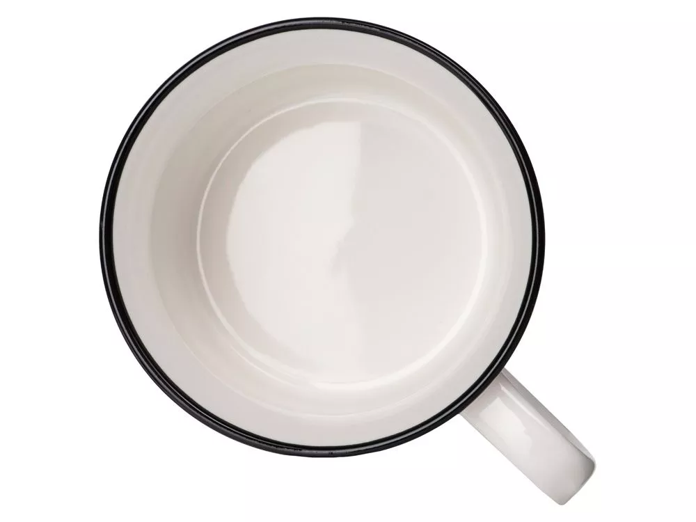 Кружка из костяного фарфора с выраженным рельефным ободком, окаймленным цветной контрастной полосой. Цвет полосы можно органично сочетать с цветом нанесенного логотипа, что придаст дизайну конечного продукта цельность облика. - удобная ручка - цветная контрастная полоса, которую можно сочетать с вашим лого - самый популярный объем — 360 мл Тампопечать (1 цвет (белые изделия)) на данный товар осуществляется бесплатно. Оплачивается только настройка оборудования в размере 3600 рублей на весь тираж.