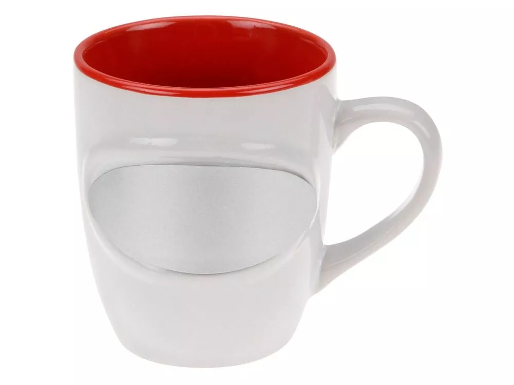 Оригинальная кружка на 300 мл с металлической вставкой на магните будет прекрасным деловым сувениром. На металлическую вставку можно нанести логотип компании или рисунок.