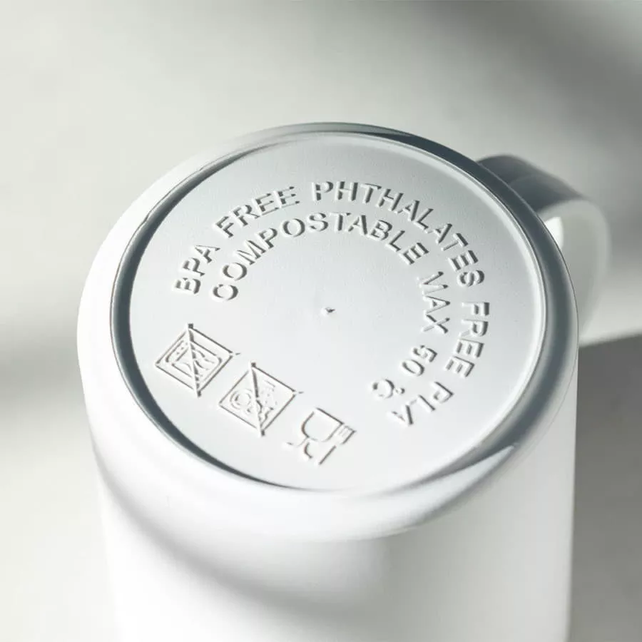 Кружка изготовлена из полилактида - биоразлагемого пластика (BPA free), в основе химической формулы которого лежат молочная кислота и лактид. Сырьем для его производства служат ежегодно возобновляемые ресурсы: кукуруза и сахарный тростник.