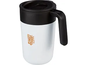 Стильная кружка Nordia снаружи отделана нержавеющей сталью, а изнутри изготовлена из экологически чистого переработанного ПП. Внутренняя крышка, ползунок и ручка также изготовлены из переработанного ПП, полученного из сертифицированных и ответственных источников. Крышка герметична и имеет раздвижной зажим, что делает кружку идеальной для наслаждения напитками в дороге. Без содержания BPA, протестировано и одобрено согласно немецкому законодательству о безопасности пищевых продуктов (LFGB), проверено на содержание фталатов согласно нормам REACH. Объем 400 мл. Рекомендуется мыть вручную.
