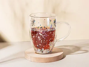 Кружка с праздничным настроением сделает любое чаепитие немного ярче и настроит на позитивный лад. Яркие блестки свободно перемещаются между двойными стенками: просто встряхните кружку, и вихрь цветных блесток взметнется наверх. Двойные стенки позволяют не обжечь ладони, даже если внутри — самый горячий напиток, а удобная широкая ручка дает комфортно обхватить кружку. Обратите внимание на то, что ручка не нагревается: это делает ее особенно удобной и объясняется конструкцией. Материал — боросиликатное стекло: легкое, словно пластик, прочнее обычного минерального стекла, и при этом такое же безопасное для человека. Кружку можно использовать с напитками до 150 градусов Цельсия, мыть в посудомоечной машине. - жаропрочное боросиликатное стекло - не обжигает руки: двойные стенки и не нагревающаяся ручка - безопасный для человека прочный материал - блестки не статичны, а подвижны: при встряхивании они меняют свое положение - нельзя разогревать в СВЧ-печи - можно мыть в посудомоечной машине Тампопечать (1 цвет (цветные изделия)) на данный товар осуществляется бесплатно. Оплачивается только настройка оборудования в размере 3600 рублей на весь тираж.